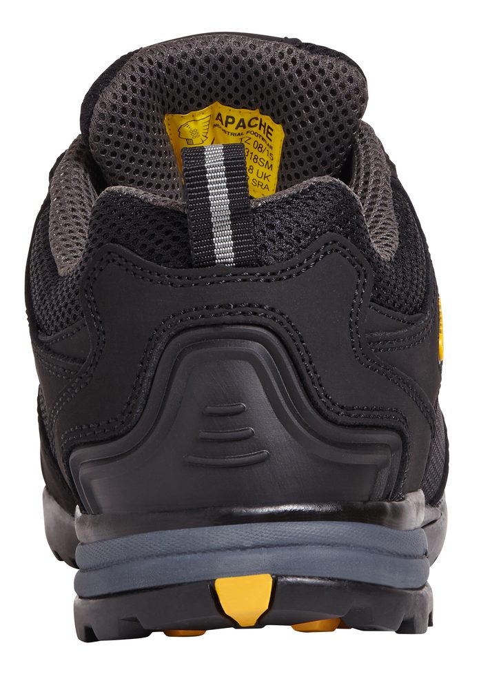- Black Safety Trainer • Leather & Mesh • Built for protection with the look and feel of a classic trainer, the AP318SM blends comfort and durability for everyday wear. Manufactured from black nubuck and breathable mesh, it features a padded collar and tongue to keep you comfortable on the job. A steel toe cap and steel midsole provide reliable protection, while the anti-scuff toe guard helps extend the life of your footwear. The lightweight phylon