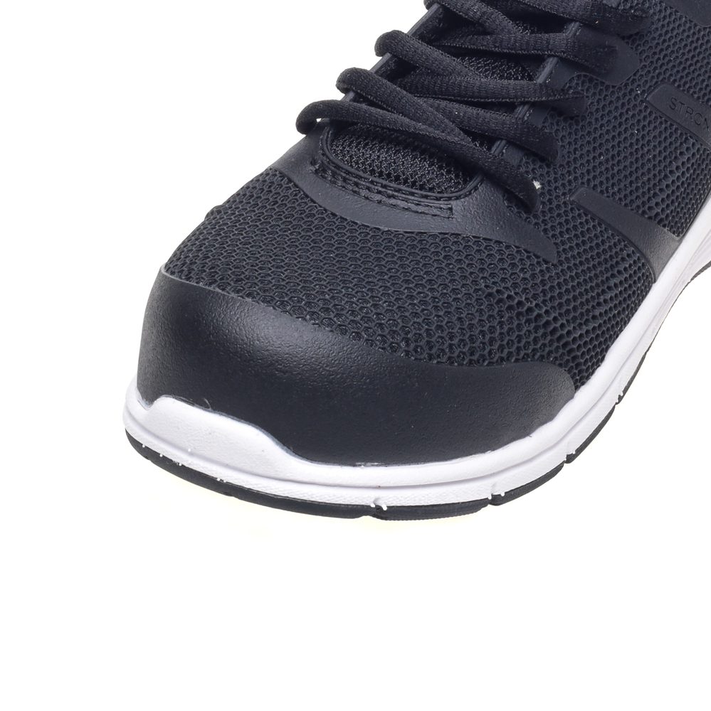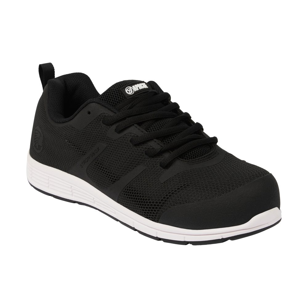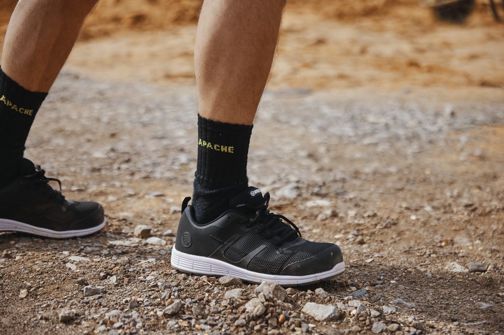 - Black Lightweight Sports Trainer • PU Fine Moulded • The Apache Vault trainer combines modern style with reliable protection, making it ideal for light industrial environments. Designed with a fine-moulded polyurethane upper, padded tongue, and collar for all-day comfort, it features an aluminium toe cap for safety without the weight. Its phylon and rubber outsole ensures flexibility and grip, while each pair is sustainably produced using the equivalent of four recycled plastic bottles. Completely free from animal products, the Vault is a lightweight, vegan-friendly choice that looks and feels like a sports trainer.