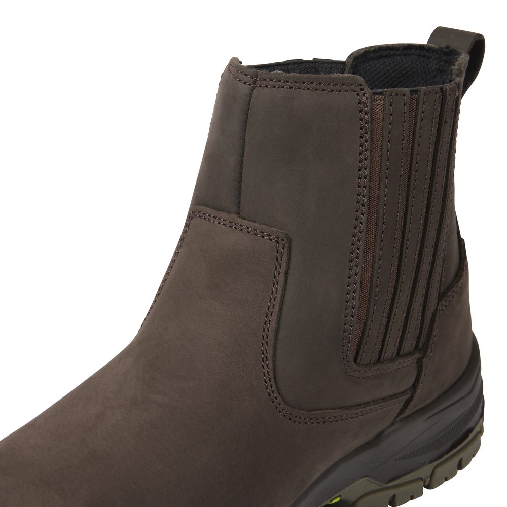 - Brown Water Resistant Dealer Boot - GTS Outsole • Full Grain Leather • Introducing the WABANA which is part of the Apache Pro Series range. The Wabana is a stylish, good looking dealer boot, with all the qualities you require for work. Our main focus is comfort. The boot is fitted with our Apache insock, allowing core comfort you have never felt before. The elasticated sides allow for ease of access into the boot. Wabana is manufactured onto out GTS 'Grip Traction System' outsole which passes the highest slip resistance. With a composite toe cap and composite midsole, it is fully non-metallic and lightweight. We have also included a scuff cap for added durability and ankle protection. Welcome to your new work staple!
