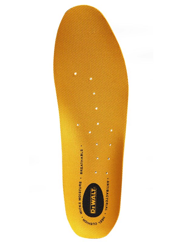 - Polyurethane Comfort Insole • Polyurethane • Comfort replacement insoles. Anti-bacterial to reduce odour. Moisture wicking system. Perforated for brethability. High degree of cushion comfort including arch support. Universal cut to fit size. A suitable replacement for all DeWalt safety footwear.