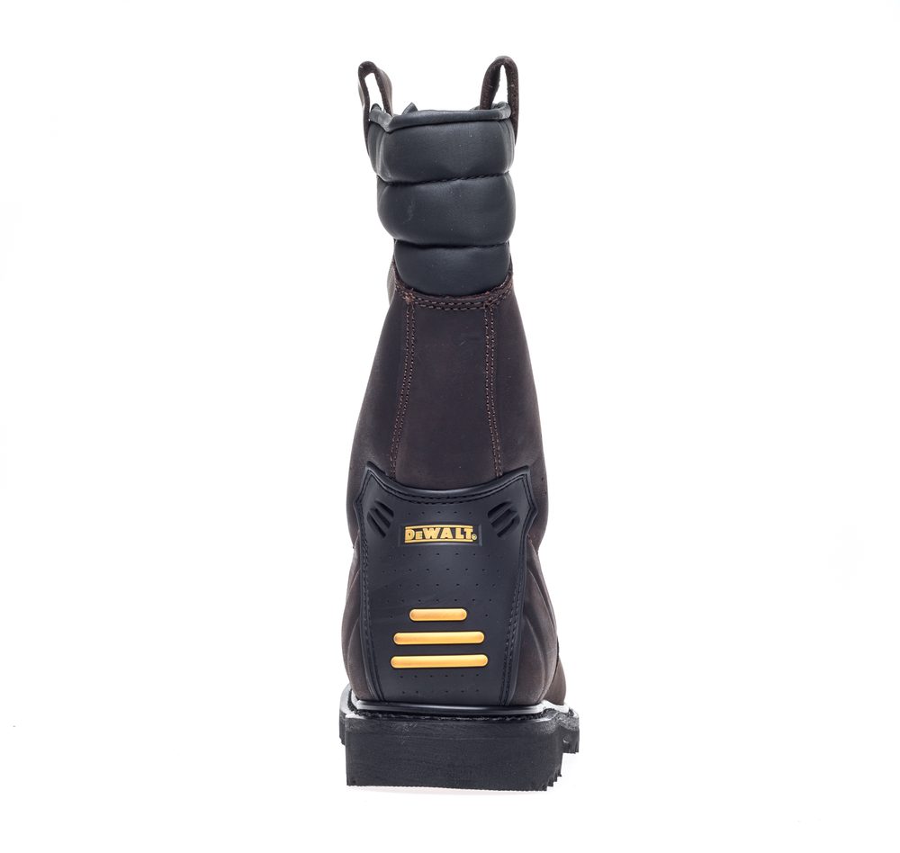 - Brown Welted Rigger Boot • Full Grain Leather • Brown full grain leather upper. Padded cuff for added comfort. Steel toe cap and steel midsole protection. Comfort insole. Durable goodyear welted rubber outsole. Padded ankle and TPU heel support. A robust styled rigger boot from DeWalt.