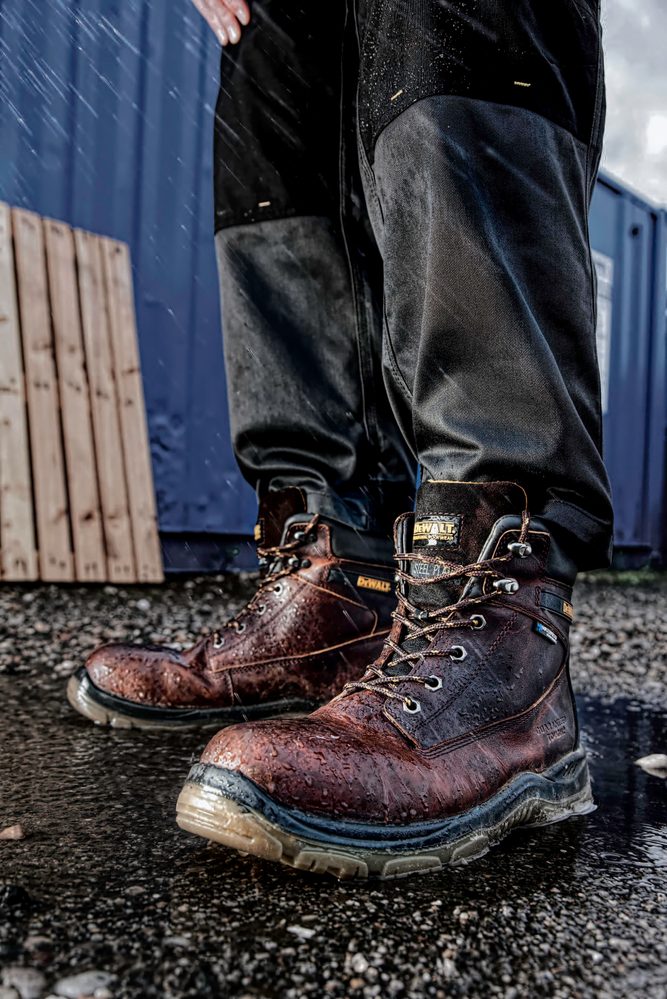 - Tan 6'' Waterproof Safety Boot • Full Grain Leather • Full grain tan lether upper. Waterproof and breathable membrane inner lining. Padded tongue and collar for added comfort. Steel toe cap and steel midsole protection. PU comfort insole. TPU dual density outsole. A high quality waterproof safety boot from DeWalt.